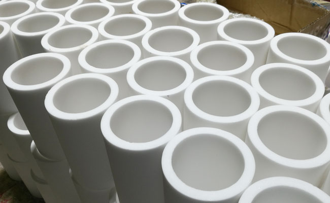 6、安装:烧结完成的陶瓷经检验合格后,通过胶粘贴片、点焊卡装、内衬陶瓷环等方式制作耐磨陶瓷管。
