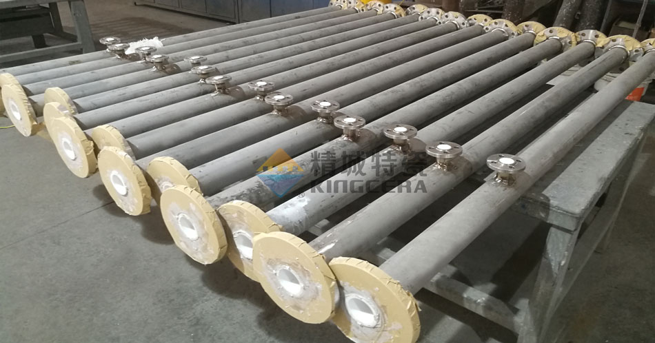 三、耐高温:耐磨陶瓷原本就是在高温环境下烧结而成,内衬陶瓷可以在1000多度的环境中正常工作,但是耐磨陶瓷管是由粘合剂将陶瓷和钢管粘贴在一起的,粘合剂的耐高温能力限制了管道的耐温性能,所以一般耐磨陶瓷管的耐温范围在-20℃—500℃。不过,使用机械自锁或者一体成型法生产的耐磨陶瓷管就避开了粘合剂的限制,可以承受1000℃的高温。